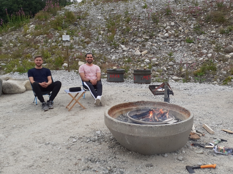 Grillning 1: Titta vilken fin eld vi har gjort. Nu väntar vi bara på glöden.