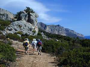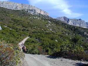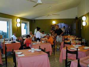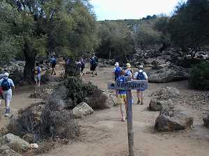 Vi träffades något senare för gemensam promenad ner till Lanusei. Vi skulle framför allt köpa vatten. Man bör helst inte dricka kranvattnet, även om just vattnet på vårt hotell lär vara drickbart. Affärerna är stängda 13.00-17.00, så vi väntade i en restaurang till kl. 17.00. Sedan letade vi upp affärer, som sålde vatten. Dessa kunde heta Minimarket eller Allimentari. 1,5 liter vatten kostade 1000 lire (5:-). När vi kom tillbaka till hotellet, slog tröttheten till så vi passade på att sova någon timme. Vi hade ju inte sovit så många timmar natten före. Kl. 20.00 serverades en 3 rätters middag och efteråt presenterade sig alla deltagare för varandra. I morgon bitti är det frukost 8.30-10.00 och 10.00 går bussen för vår första vandring. |