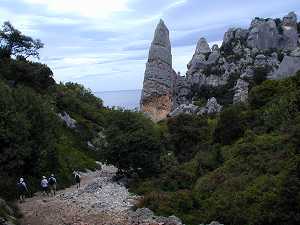 mycket lång och besvärlig stig ned mot havet. Den var rätt