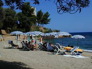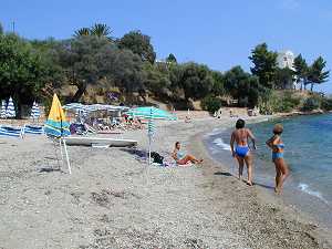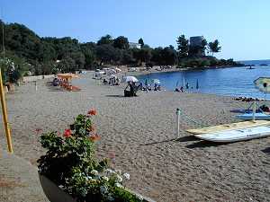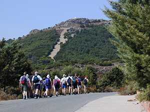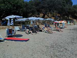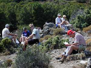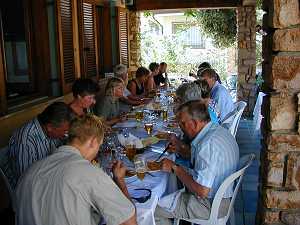 Vi hade fått med oss ordentliga lunchpåsar från hotellet i morse, vilka vi nu åt av gemensamt vid uteterrassen. Sedan gick de flesta av oss ned till badstranden c:a 500 meter från hotellet. Vid stranden har hotellet egna stolar med parasoller, som vi kan använda. Vi badar även en hel del i det 27-gradiga vattnet. Det är riktigt mysigt att få koppla av efter tre dagars vandring uppe i bergen. Fredrik och jag skall dock snart ge oss av på en joggingrunda upp i bergen här omkring bl.a. för att rekognosera morgondagens vandring. Då kommer vi nog upp en hel del och kanske får en fin utsikt utöver havet. |