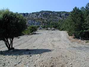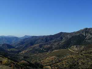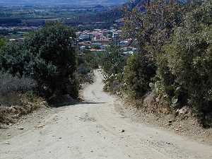 Den övriga gruppen med Fredrik tog den branta vägen uppåt sluttningen. Jag kom sedan i kapp dom uppe vid platån och sedan gick vi alla utefter vägen med den fina utsikten och förbi den öde getfarmen. |