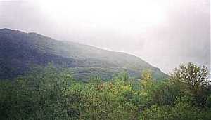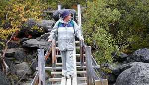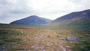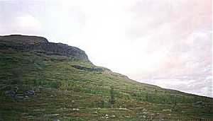 Denna andra dag var en pina från början till slut. Det blev märkbart direkt då Staffan hjälpte mig på med ryggsäcken. Jag var nära att skrika rakt ut av smärta. Axlarna kändes som blödande sår. Denna dag var det inte en enda rak väg. Det var bara uppför. Stigen vi gick på var enbart stenar. Ovan som jag var fick jag hela tiden tänka på var jag satte fötterna. På vilken sten och helst mitt på stenen. Pinan i min trötta kropp går inte att beskriva i ord. När jag tyckte vi vandrat i flera mil, sa Staffan att vi gått tre kilometer. Det här går aldrig "tänkte jag då". |