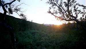 Värken gjorde att jag var på uselt humör, och jag var nog inte go att tas med den här kvällen. Jag hade ingen aning om var vi var. Hur långt vi gått eller vart vi skulle. Kände bara smärtan, och kunde inte njuta av det jag såg. Att ta sig i och ur tältet var rena döden för min värkande kropp. Denna kväll klädde jag mig ordentligt. Vågade inte chansa på att det skulle bli varmt. Jag blev väldigt varm först, men framåt småtimmarna fick jag sova gott några timmar. Vaknade vid femtiden. Satte mig utanför tältet och drack kaffe. Hade värmt vatten kvällen innan. Nu kunde jag i lugn och ro sitta och njuta av utsikten. Den var enorm. Vilka vidder. Hade aldrig sett något liknande i hela mitt liv. |