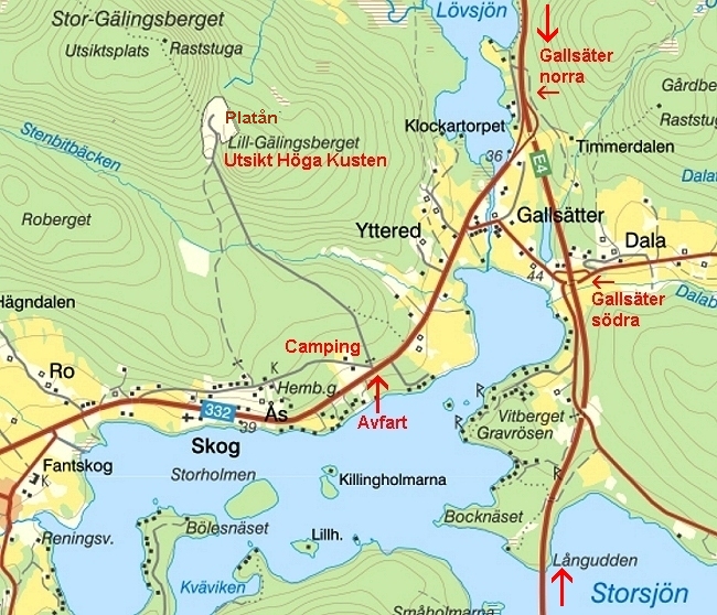 Från Högakustenbron norrut till Gallsäter södra ca:17km vik av höger, därefter höger igen. Kör ca: 1km fram till korsning med väg 332. Sväng vänster, följ väg 332 ca:1km vik av höger till grusväg.