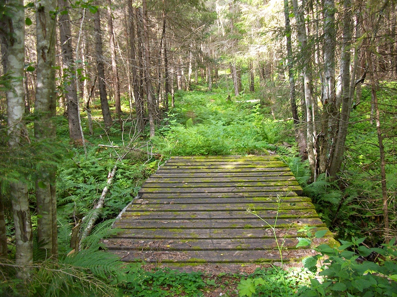 Bild 2: Mossbeklädd gammal bro i skogen.