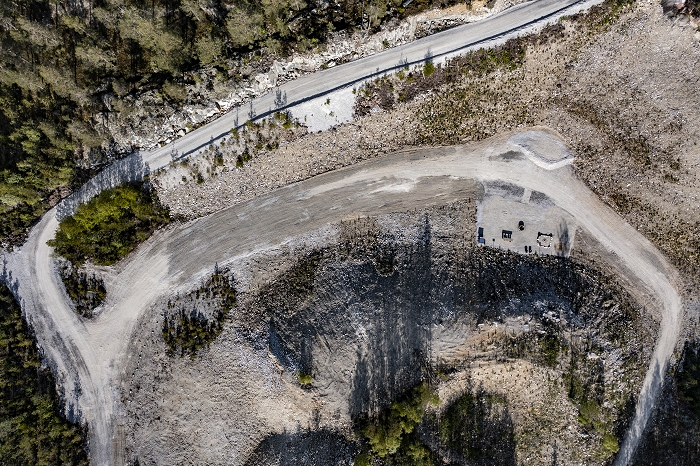 En drönarvy från ovan över platsen för Skoghalla Marknad. Den här marknaden har gott om plats