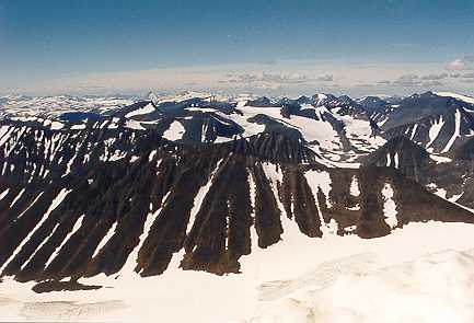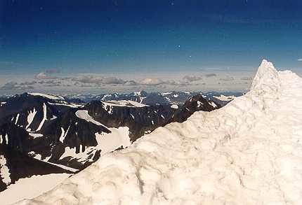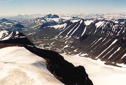 Mot sydväst där man kan se Sareks fjällmassiv.