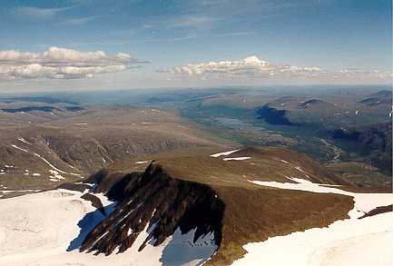 Mot öster med Nikkaluokta och Kiruna i fjärran finns inga höga fjäll.