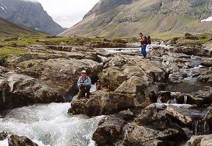 Vi hittade ett smalt pass där vi kunde hoppa över Ladtjojokk.