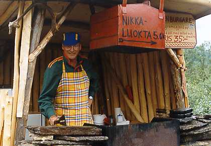 | 17:10 var vi framme vid sjön och 5 minuter tidigare hade båten gått. Den skulle sedan enligt tidsschemat gå tillbaka 18:00. Då vi blev upp mot 20 st. som väntade ringde man till båten. | Denna kom då snabbt tillbaka och en dryg halvtimme senare var vi på väg. Då hade jag även hunnit äta en renburgare för 35:- hos bröderna Sarri. |
