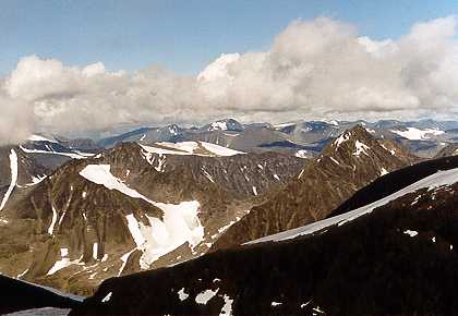 Det blev soligt och vi såg topparna runtom. Här stannade vi uppe till höger,