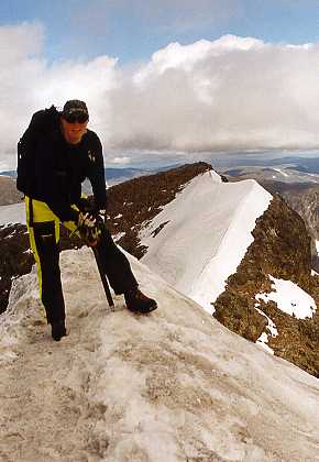På väg mot sydtoppen som i år bestod mest av is, då snön var bortsmält.