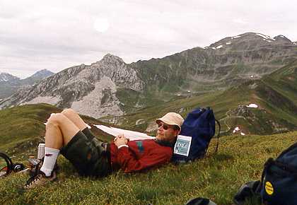 Här ligger jag och vilar innan vi går ner från Wanglspitze.