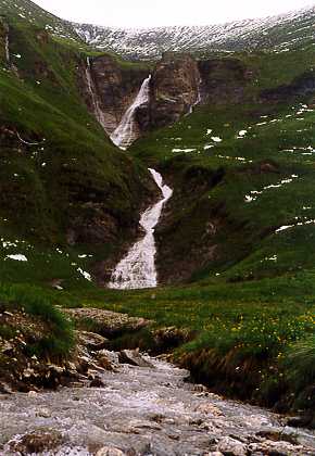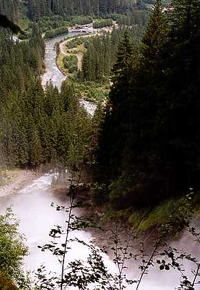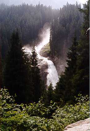 Dag 4: Tisdag 7/7 1998 kl. 21:00I dag har vi varit ut på en lång busstur genom delar av Tyrolen. Vädret i morse var fint med sol och vindstilla men lite disigt. Jag klädde mig i shorts och T-shirt som de flesta andra samt joggingskor och ej sandaler, som jag tänkte först. För säkerhets skull tog jag även med en jacka och paraply, vilket senare skulle visa sig vara användbart.Efter frukost åkte vi vid 9-tiden till Ramsau och sedan upp mot Haizenberg, dit vi även skall åka i morgon för att vandra. Färden fortsatte över ett pass mot Gerlospass, där vi stannade och tittade på en sjö, som var konstgjord med en av Europas största jorddammar, med fjällmassivet Wildkorspitze i bakgrunden. Därefter fortsatte vi till Krimml, där det fanns ett mäktigt vattenfall på 380 meter i tre steg. Där fanns även många andra turister. Vi gick en brant väg upp utefter fallen och efter en halvtimme stannade vi vid en restaurang och åt lunch. Här fanns det möjligheter att ta många fina bilder. |