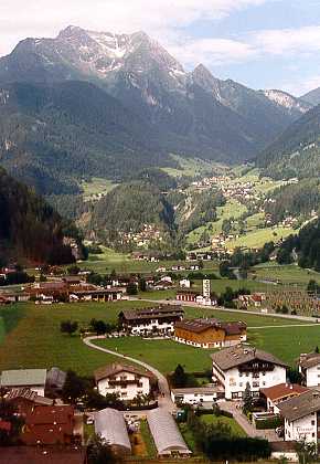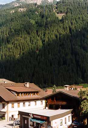 Dag 3: Måndag 6/7 1998 kl. 18:00I lördags klev vi upp 04:00 och åkte bil till Arlanda. Vi fick vänta någon timme där, då vi var lite för tidiga. Flyget till München gick 07:45.C:a 10:00 var vi i München. Vi hade inte fått någon beskrivning var bussen skulle hämta oss, så vi gick mot busshållplats för gruppresor. Dit kom även ett annat par, som reste med samma resebyrå men skulle till Val Gardena i Italien. Mannen hade dock hört att man skulle gå till hållplats för linjebussar, så vi gick dit, vilket var c:a 500 m ifrån. Med deras hjälp lyckades vi även ringa bussen med vår mobiltelefon och fick då reda på att den skulle komma till hållplatsen för linjebussar. Vi åt en gemensam lunch med paret som skulle till Val Gardena och klev sedan på vår buss, som kom 13:00 och åkte vidare med sällskapet i bussen på drygt 40 personer till Mayrhofen i Österrike, där vi var 16:00. Efter att ha packat upp på hotellet var det middag med information kl. 18:00 Mayrhofen är en liten men mycket trevlig stad i Zillerdalen med höga alptoppar runt om. På kvällen gick vi ut en tur ned mot ån som rinner genom dalen och gick utefter denna en 15 minuter. |