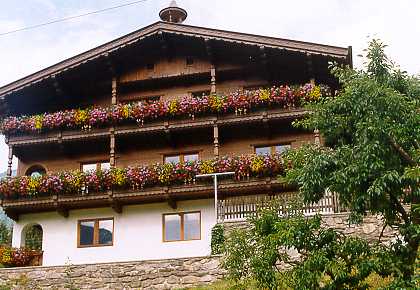 Därifrån var det sedan en liten kabinbana till Finkenberg, där vår busschaufför väntade för hemfärd. Alla dessa liftar, lokalbussar och även lokaltåget kunde vi åka med ett liftkort, som kostade 480 shilling=290:- för 6 dagar. Det är praktiskt att ha ett sådant kort, som gäller överallt. Efter hemkomsten tog vi det lugnt fram till en ny 3-rätters middag vid 18:30. Efter denna middag tog vi en promenad genom den övre delen av staden och beundrade all blomsterprakt utefter balkongerna på dessa speciella hus, som finns i Alperna. I morgon är det ledigt för vandring och vi skall åka buss till Kitsbühel eller Innsbruck. |