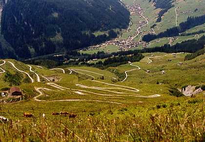 fullastad en brant serpentinväg uppför dalen Schwendberg till Sportalm