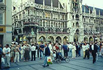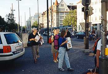 Vi gick sedan ned till tågstationen S-8 för att ta tåget in till München och sova över på ett hotell. Det visade sig att 1 biljett kostade 14 DM medan 2-5 personer kostar 26 DM, så vi köpte två sådana biljetter och åkte tillsammans på dessa in till Hauptbahnhof i München. Vid stationen fanns en turistinformation, där man kunde köpa en stadskarta för 50 pfennig. Man bör således ha lite småpengar i DM med sig på resan. Vårt hotell låg sedan bara några 100 m bort. Vi checkade in och bestämde att träffas något senare för gemensam promenad och middag. |