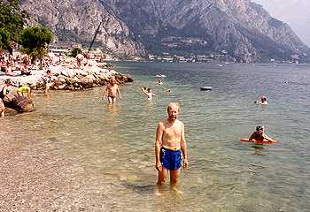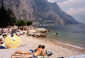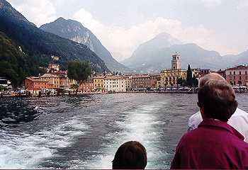 Dag 5: Tisdag 6/7 1999 kl. 23:00Bussturen i morse kom så småningom fram till Riva vid norra änden av Gardasjön. |