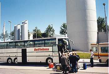 Senare fick vi veta via mobiltelefon att bussen blev ännu mer försenad. Då var det bra att ha tillgång till en telefon för att ha kontakt med bussen. Den kom så småningom och sedan bar det av söderut i värmen. Konstigt att inte fler utnyttjar möjligheten att flyga till München och kliva på bussen där. |