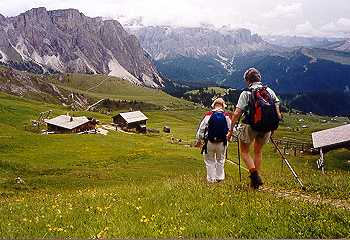 Vandringen går vidare från Seiser Alm till Hütte Rasciesa.