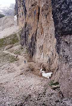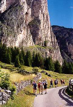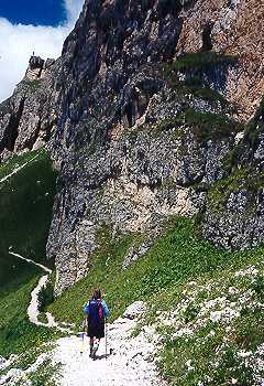 Därifrån gick de neråt mot Mont de Saura för att ta liften till Monte Pana och sedan liften till S:t Christina. Vi andra gick vidare antingen via väg 526A eller en liten stig mycket nära bergsväggen. |