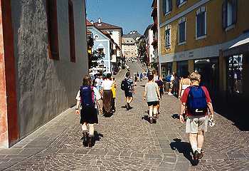 Vi går ner mot centrum i S:t Ulrich för att leta upp en butik,