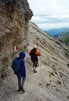 Väg 4 gick brant uppåt mot Dolomiten Höhenweg.