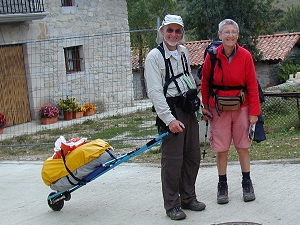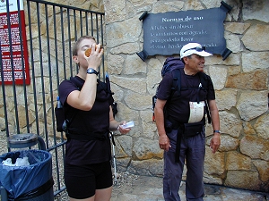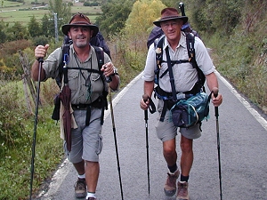 Det här har varit ett mycket härligt äventyr och kan rekommenderas i första hand som vandring. Men vår löpning har gått bra utan några problem, så det blir nog fler gånger. Det var extra roligt att bli bekant med alla andra vandrare på leden. Hälsningar till alla trevliga vandrare.Så vi vill hälsa till de två franska bröderna med filmkamera, de fyra glada ungdomarna från Barcelona, de tre spanska männen från Gran Canaria, som vi träffade redan i Jean de Pied de Port.Vi hälsar även till den store buttre mannen från Australien, paret från Mexico/Schweiz, paret från Estland/Sydafrika, den glada danskan, tre unga spanjorskor från Navarra, mannen som gick baklänges utför backen, cyklisten som fotades oss och naturligtvis stort tack till Sten och Lillemor för trevligt sällskap hela veckan. |