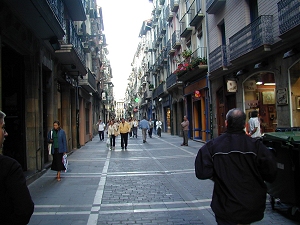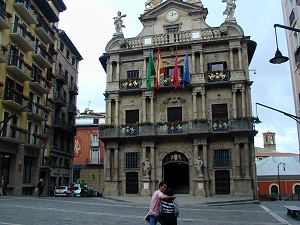 Vi fortsatte dock vidare på en smal stig uppåt, som gav en härlig utsikt. Löpningen gick så bra att redan kl. 11 var vi framme i Pamplona. Men det visade sig vara långt ifrån centrum utan vi var i en förort, så vi fick gå drygt 5 km till och det tog ett tag innan vi insåg att det var så långt kvar. Vi kom senare in på en väg upp mot en höjd och där fanns den ursprungliga gamla Pamplona, som verkligen var en charmig stad med smala gränder och gamla höga hus. Här stämde kartan bra, så vi hittade snabbt till vårt hotell och var där kl. 12.15 Så totalt tog det även i dag 3,5 timmar på c:a 22 km. Det visade sig dock att vi var lite för snabba då bagaget inte var här. Vi ringde de ansvariga och hörde att enligt kontaktet skulle transportföretaget se till att väskorna var här först kl. 16.00, inte så kul. Jag hade dock hotel voucher med i plånboken, så vi fick vårt rum och kunde duscha. Sandra ringde lite senare företaget igen för att höra hur det gick med väskorna och sedan hade vi dom redan kl. 13.30. Man kan säga att på sådana här resor och även andra kan det vara många små saker som påverkar mycket. Men hittills har det gått bra och vi var väl mest oroliga för att inte orka springa , få skador och att det kanske skulle bli för varmt. Men det har gått bra. Framöver ska det troligen bli soligare och varmare, så då får jag inte göra som i dag, då jag glömde att smörja in mig med solskyddskräm, men det gick ju bra då det mest var mulet. I eftermiddag har vi tagit en promenad och druckit en öl med smörgås. Nu är Sandra ute ensam på stan och shoppar. Sedan ska vi gå ut och äta middag på någon restaurang. Det här hotellet har ingen riktig matsal så idag ingår ej middag i resan. |