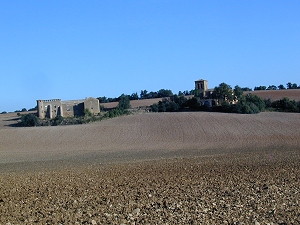 det 12 km utan någon by fram till slutmålet Los Arcos. Leden gick oftast