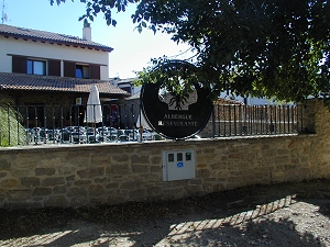 Efter ett tag kom vi fram till en skylt, där det stod 11 km till Zubiri. Här tog vi en längre paus och åt russin/nötter samt banan och kaka, som vi hade med från frukosten. Det känns inte som det fattas energi, men det går däremot en hel del vatten. Det var även varmare i dag än i går uppe på höjderna. Sedan fortsatte vi mestadels springande och kom till Erro, där det fanns en stor cementring, som man kunde sitta på. Vi stannade för russin och vatten tillsammans med många andra. Härifrån var det bara 3km kvar brant utför. Vi hade startat på drygt 900 m.ö.h. i Rocesvalles till drygt 500 meter här i Zubiri varav 300 höjdmeter var från Erro. Vi var framme kl. 12.45, så våra 22 km tog 3,5 timmar att springa. När vi kom ner till första byggnaden såg vi att leden gick direkt vidare till vänster, medan vi skulle gå in i samhället och leta upp vårt hotell. Ursprungligen skulle vi ha åkt taxi tillbaka till Rocesvalles, då man inte hade fått tag på hotellrum i Zubiri. Men i går morse hade man ordnat med rum här i Zubiri, så vi bor på hotell Gau Txori längst bort på genomfartsvägen. Först hade dom på hotellet lite svårt att hitta rätt rum eller vad det var. Det pratades en hel del men vi förstod ju inget och dom kunde ingen engelska som vanligt. Men efter en stund kom hotellchefen och allt ordnades upp. Vi hade en pool precis utanför fönstret men tyvärr svängde vädret och det kom regnskurar så det blev inget badande i poolen. Vi tog en promenad i samhället och träffade på det andra svenska paret. Dom hade dock ej uppfattat att det blivit ett hotellbyte och åker just nu tillbaka med bil för att hämta sitt bagage, som är i Rocesvalles. Här kan man kommentera att det är mycket bra att ha mobil med sig och att företaget som kör vårt bagage borde ha fått mitt mobilnummer, om något skulle hända. Det hade troligen blivit enklare för det andra paret om företaget haft deras mobilnummer och så måste man ju ha mobilen påslagen förstås. Nu tar vi det lugnt och inväntar middagen, som börjar redan från kl. 18. |
