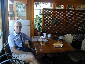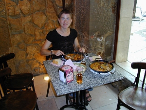 Dag 9: Söndag 23/9 2007 kl. 20.00I går kväll gick vi ut igen en stund vid 20-21 tiden. Det var då fullt med folk ute och det visade sig vara sista dagen på en festvecka. Mycket musik och många var festklädda och även småbarn fick vara med. Det är roligt att se alla generationer vara ute på nöje tillsammans.Vi drack ett glas vin och satt ute en stund innan vi gick till hotellet och lade oss. Även denna natt var det svårt att sova bl.a. för festandet ute och en för hård säng. Vi gick inte upp i morse förrän kl. 8 och kunde sedan få äta bästa frukosten med skinka, ägg, flingor, bröd, juice, frukt, stekta ägg, bacon och ägg. Så ska det se ut. Sedan packade vi väskorna och gick mot busstationen. Bussen kom in kl 10.30 och vi hade ju redan köpt biljetter, vilka var numrerade. Dessa kostar 11,5 euro till Bilbao. Bussen åkte iväg kl. 11 och var framme kl. 12.30. Där gällde det sedan att hitta en buss till flygplatsen. Det gick bra vid en information, där en man i bakgrunden kunde lite engelska och ropade "twenty-nine". Så vi letade upp buss 29, där chauffören vill ha exakt 1,25 euro, för att man skulle få köpa biljetten. |