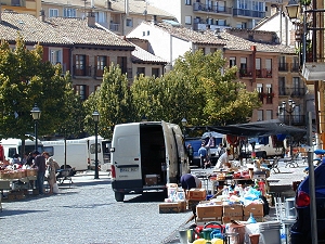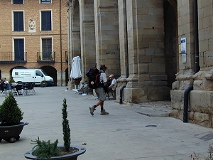 Vi hade hittills sprungit med jackor på hos men tog nu av dessa och sprang enbart i T-shirt, då det blivit varmare. Sedan fortsatte leden 5 km till Villatuerta och sedan 4 km till Estella. Vi kunde inte hitta någon vattenkran under denna del av leden, så jag hade druckit upp nästan allt vatten. Estella är en rätt stor stad på 13000 invånare. Vi avvek från leden och gick över en bro till höger in mot stan. Vi var där kl. 11.40, så dagens 22 km gick på 3.15 timmar. Vi hade sprungit på rätt fort i mitten och blev lite slitna mot slutet, så vi borde kanske ha lite lugnare tempo. Något att tänka på särskilt på lördag, då det är 28 km och kanske regn. Vi gick vidare genom huvudgatan och letade oss med en karta fram till hotell Yerri, som ligger en bra bit från leden. Det verkar konstigt nog inte finnas så många hotell här, enligt en karta vi hittade här på hotellet, men enligt den engelska bok vi har som hjälp ska det finnas många. Nåja vi checkade in med den voucher, som jag hade i plånboken. De ville även se pass, så man måste ha det med sig. Vi var här som vanligt lite tidiga så väskorna hade inte kommit. Vi vilade en stund på rummet och tvättade av oss värsta svetten . Senare tänkte vi gå ut och handla lite, men när vi kom ner så kom precis transportföretaget med våra väskor kl. 12.30. Det var ju bra, så kunde vi gå upp och duscha och byta om till riktiga kläder. Därefter gick vi ut och handlade lite dricka, godis, frukt och bröd att ha under eftermiddagen. Vi gick även runt lite i staden och satte oss utomhus vid en pub med en öl och macka. Nu hade solen värmt upp så det kändes skönt, men det var ändå bara runt 20 grader i skuggan, troligen svalare än normalt. När vi satt där kom ett par fram och undrade varifrån vi kom. Vi hade tydligen sprungit om dom flera ggr. Dom var från Mexico och Schweiz och pratade engelska, så vi fick ett trevligt samtal. De tycker det är för varmt att vandra i Spanien juli-augusti och skulle vilja ha alternativ, så jag rekommenderade Sverige. De vill inte, som många andra, gå med tung ryggsäck. Här skulle idén med vandring runt Mälaren och företag, som fraktar bagage, vara ett utmärkt arrangemang för dom. När vi fikat färdigt gick vi tillbaka till hotellet, så nu tittar vi på TV, vilar och äter godis. |