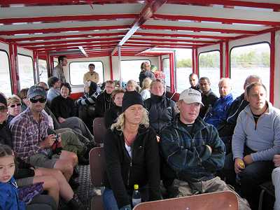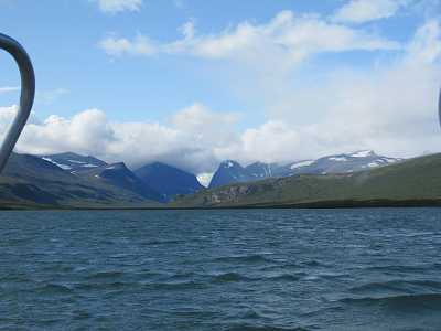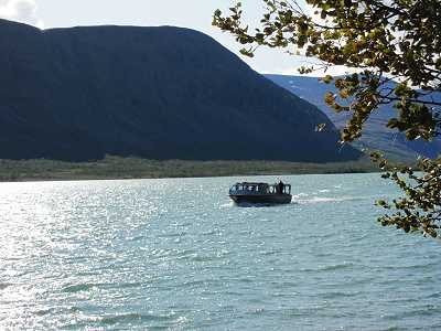 Dag 2: Torsdag 13/8 2009 kl. 20:15Nu ligger jag i mitt tält vid Tarfalaforsen 1 km före fjällstationen. Det tog en timme och en kvart för mig att gå till Laddjujavri. Där var mycket folk och full kommers på hamburgare, våfflor, fika och allt möjligt att äta.Man kunde även köpa en torkad renbog för 300:-, men det var väl mycket att dra med sig. Kanske jag köper en på hemvägen. Kl. 14 klev vi på båten och alla rymdes. Båtfärden kostade 160:- en enkel resa. Man kan även gå runt sjön, men de flesta åker nog båt. |