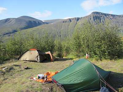 att tälta på men en fin utsikt mot Kebnekaisemassivet.