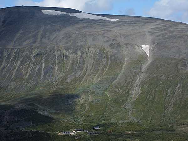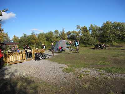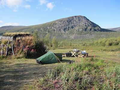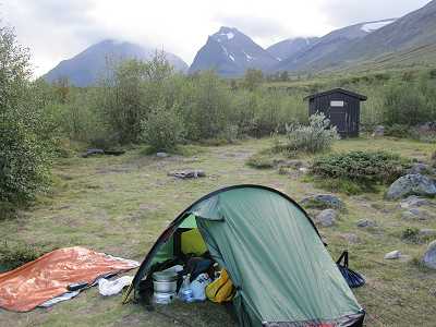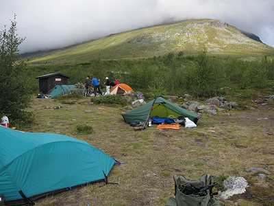 Här finns tältplatser, torrdas och man kan lämna skräp. Jag har således inte gått fram till fjällstationen. Nyss kom fyra finska ungdomar och slog upp sina tält intill. Annars är de flesta utspridda på sluttningen mot stationen. Jag har bara fikat i kväll, då jag åt en rejäl lunch. Jag har rätt många mackor kvar hemifrån, som jag måste äta upp. Jag gjorde tydligen för många. Vädret är bra nu men ungdomarna säger att det ska regna i morgon. |