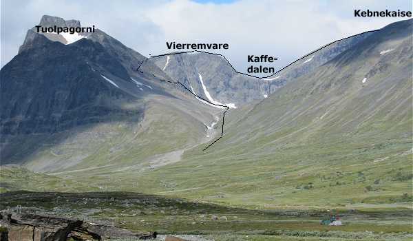 vilket gick bra. När jag var nöjd gick jag mot söder upp på Kebnetjåkka lilltopp.