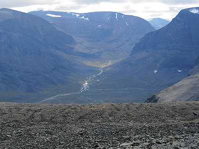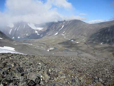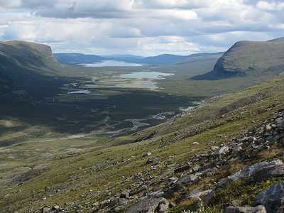 Vädret blev bättre igen och där uppe var det fin utsikt ner mot Laddjuvaggi.