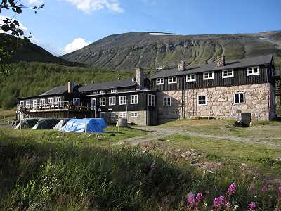 Dag 3: Fredag 14/8 2009 kl. 09:30Jag sitter nu i fjällstationen och myser med en kopp kaffe och nybakad bulle. Dom kör på vintern upp 4 ton mjöl för att kunna baka bröd och bullar till gästerna, vilket är populärt. Man fick 10:- rabatt om man är stf-medlem.Det var ljust länge i går kväll särskilt i mitt gula innertält. Jag löste lite Sudoku innan det var sovdags. Det blev rätt kallt i natt, så jag borde haft mer kläder på mig. Toppluvan var bra att ha. När jag var ut kl. 01 var det halvljust, så det blir inte helt mörkt. |