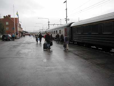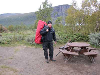 Sedan lämnade jag detta ställe vid 9.30 och gick till Nikkaluokta. Då hade det även börjat att regna lite. Framme i Nikkaluokta köpte jag en polett till duschen för 20:- och kunde få min första varma dusch på en vecka, vilket kändes skönt. Sedan åt jag älgfärsbiffar för 129:- innan det var dags att åka buss in till Kiruna kl. 12.15. Jag var nu ute i mycket god tid, då tåget gick kl.17.35. På tågstationen hade man även möjlighet att köpa fika så det blev en kaffe med kaka och tidning. Utanför fanns även en grill, så senare köpte jag hamburgare med strips och är nu rätt mätt. Nu blir det till att sitta på tåget och vara framme i Stockholm i morgon bitti. Jag är väldigt nöjd med den här vandringen och har delvis haft tur med vädret, men det gäller även att kolla in molnen och se när det är regn på gång. Jag har nu pensionerat min 10 år gamla kamera och använt en ny ultrakompakt Canon Ixus 110, som hela tiden fanns på livremmen. Jag har tagit c:a 400 kort samt filmat lite och är mycket nöjd med kameran. Mobilen har även funnits med och haft täckning hela tiden, så det har gått att ringa och skicka sms. Även radion blev ett sällskap, men kanske det finns bättre numera med bättre mottagning. |
