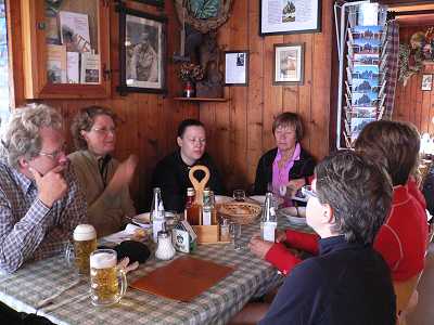 I stugan fanns kallvatten, men man kunde köpa varmvatten till duschen för 2.50 euro. Vi hade blivit informerade om att det inte var garanti att det fanns varmvatten eller dusch i alla stugor. Man lever ett väldigt primitivt liv på hütte-vandringar. På kvällen fick vi en tre-rätters middag. Vi blev tilldelade två 10 - bäddsrum, så tre, en mamma med två döttrar, låg i ett rum. |