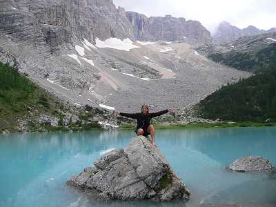 Dag 8: Fredag 17/7 2009Jag och några till gick till sjön i soluppgången. Helt fantastiskt vackert när bergen speglar sig i detta blåa vatten.Vi lämnade Cadinigruppen för att vandra i Sorapiss-massiven. Frukosten idag bestod av marmelad-buffé. Tur att vi hade en lätt vandring framför oss. |