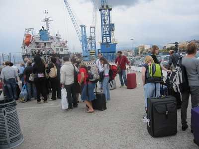 Alla samlades så småningom vid en båt som vi skulle åka med till Lipari. Det blev nästan fullt i båten,