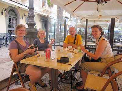 Sedan fortsatte vi vidare till Pianoconte, där vi stannade för fika. Det var skönt efter en svettig vandring uppför att få vila i skuggan och dricka något läskande. Vi kom sedan tillbaka till Lipari strax efter kl. 15. Efter en snabbdusch blev det därefter lite vila vid poolen samt ett dopp både i havet och i poolen. Nu har vi tagit en promenad till torget vid Marina Corta och dricker en kopp kaffe. |