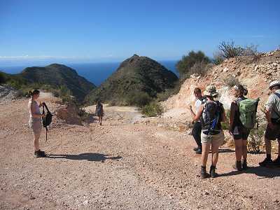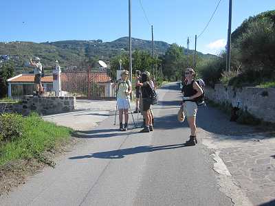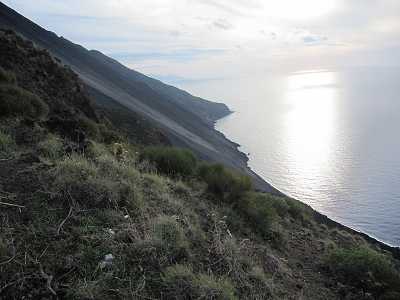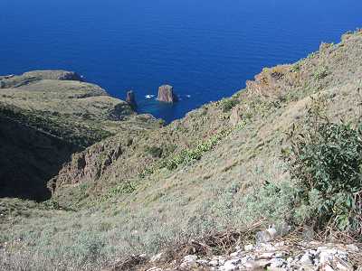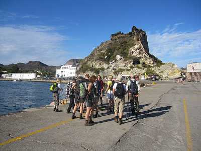 Dag 3: Torsdag 30/9 2010 kl. 18:00 I morse var det klart väder och solen sken riktigt skönt. Vi har haft en härlig vandring över den här ön Lipari. Efter frukost gick vi i samlad trupp till centrum. Därifrån åkte vi med en lokalbuss, som blev helt full med folk. Bussen tog oss upp till Castellaro. Därifrån gick vi på en grusväg nerför och mot havet och följde sedan havet. På många ställen var det formationer i slänten med många olika färger, som gav många fina bilder. Efter att först ha vandrat utför så svängde stigen och gick uppför igen och var då stensatt och det blev mer och mer hus.