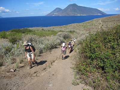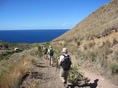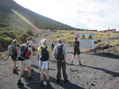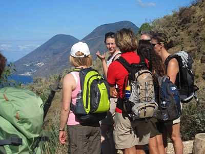 Vi ska bo på tre olika hotell och vandra upp på några vulkaner samt bada i det vattnet i Medelhavet. |