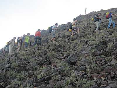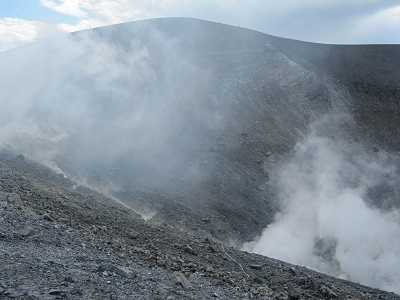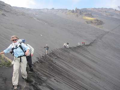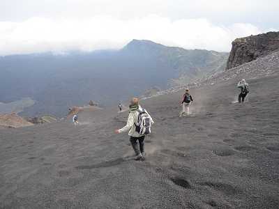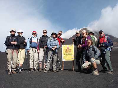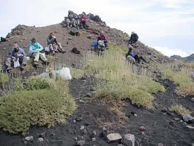 Vi fortsatte sedan uppför och kunde se röken inifrån vulkanen. Högst upp på toppen