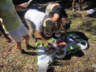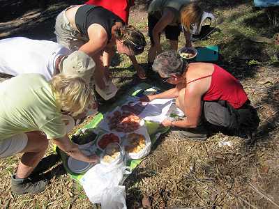 Vi stannade vid en skogskant och Anna och Anita dukade fram en lunch som vi burit med oss.