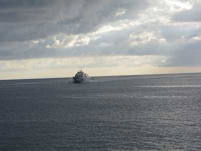 Vädret var nu rätt osäkert och när vi åkte med båten var det mörka moln runt om och delvis regn.